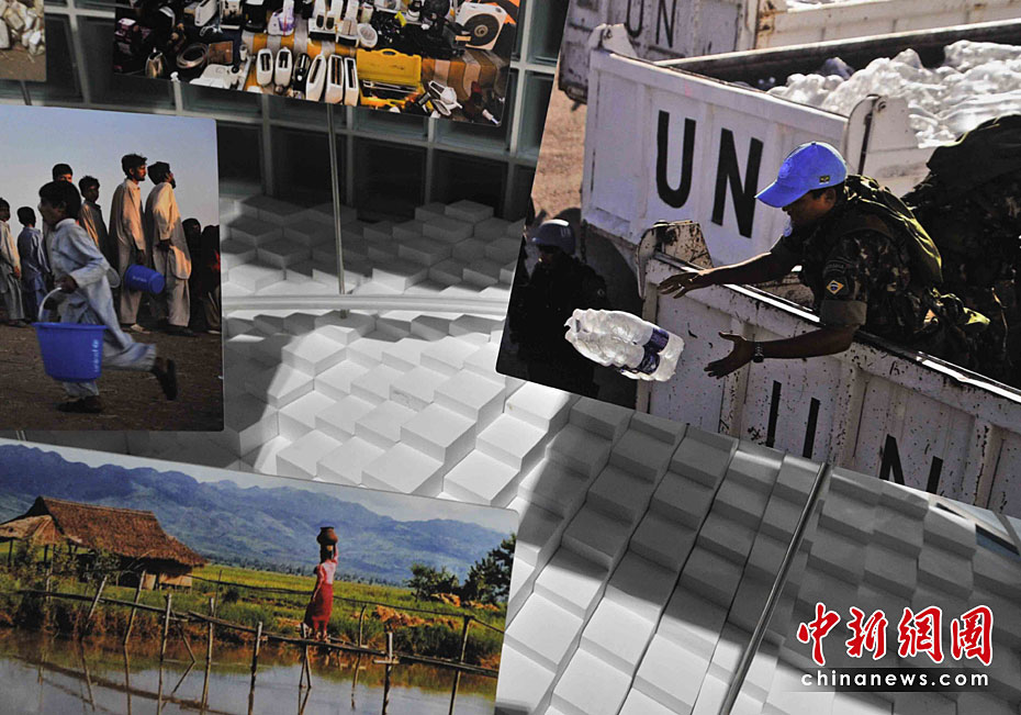 一所藍色的簡樸平房,在5月開園的上海世博會大道邊上,極不顯眼。但是,聯(lián)合國聯(lián)合館的鮮明會標,特別吸引人。這個展館集中了世界衛(wèi)生組織、世界銀行和聯(lián)合國的兒童基金會、糧農(nóng)組織、教科文組織等22個機構。圖片來源:中國新聞網(wǎng) 賈國榮 攝