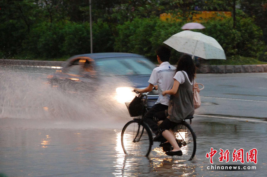 未來三天,青藏高原中東部、西南地區(qū)、江漢、江淮、江南、華南等地將持續(xù)陰雨天氣,其中,廣西南部、廣東大部、江西南部、福建南部、海南西北部、湖北大部、湖南北部、重慶大部等地有大雨或暴雨,局地有大暴雨。圖為5月9日下午,陣雨過后廣州市內(nèi)多處路面積水,影響交通。中新社發(fā) 柯小軍 攝