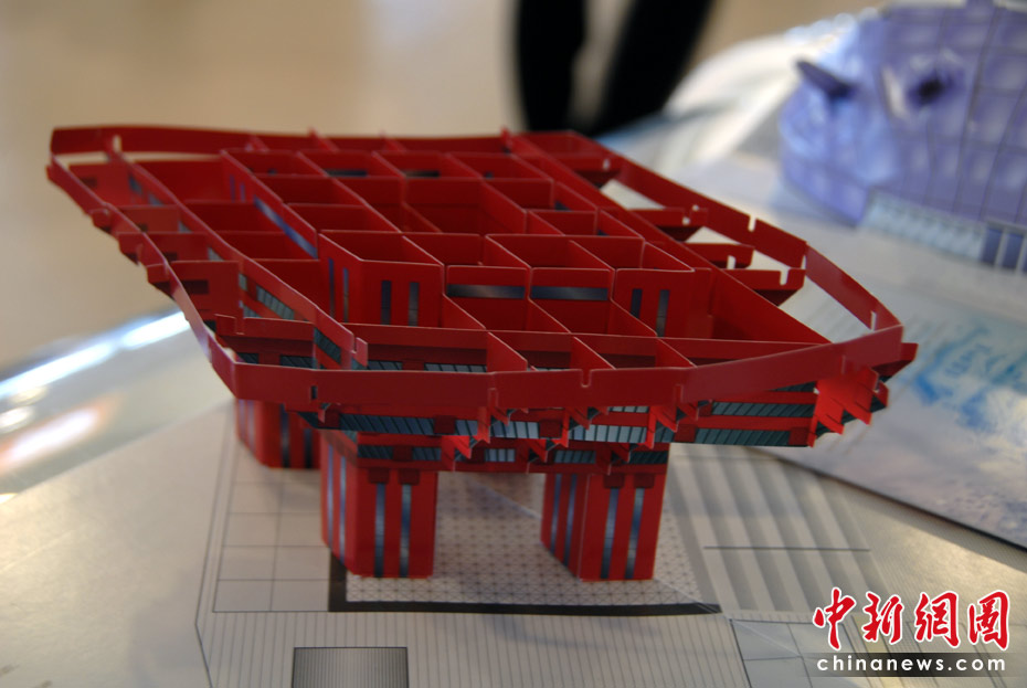 世博園區(qū)內(nèi)的特許商品店里,折紙場(chǎng)館惟妙惟肖,頗受游客的喜愛(ài)。圖為中國(guó)館紙模型。中新網(wǎng)記者 吳歆 攝