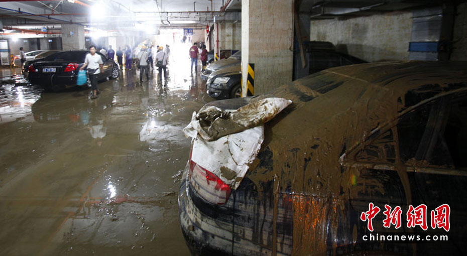 5月10日,廣州中?党堑叵峦\噲鲈馑钠嚱K于重新出水。受5月7日的大雨影響,廣州市東圃地區(qū)的中海康城的地下停車庫發(fā)生嚴(yán)重的水浸。經(jīng)過4天日夜不斷地抽水,5月10號上午,地下車庫里面的水終于干了。4天來一直轟鳴的水泵昨日終于停了下來。早晨7時許,眾車主陸續(xù)來到車庫,370多臺車橫七豎八排開,幾只塘虱在淤泥里挪動著。在拖車出庫的時候,不少車主淚流滿面。圖片來源:CFP