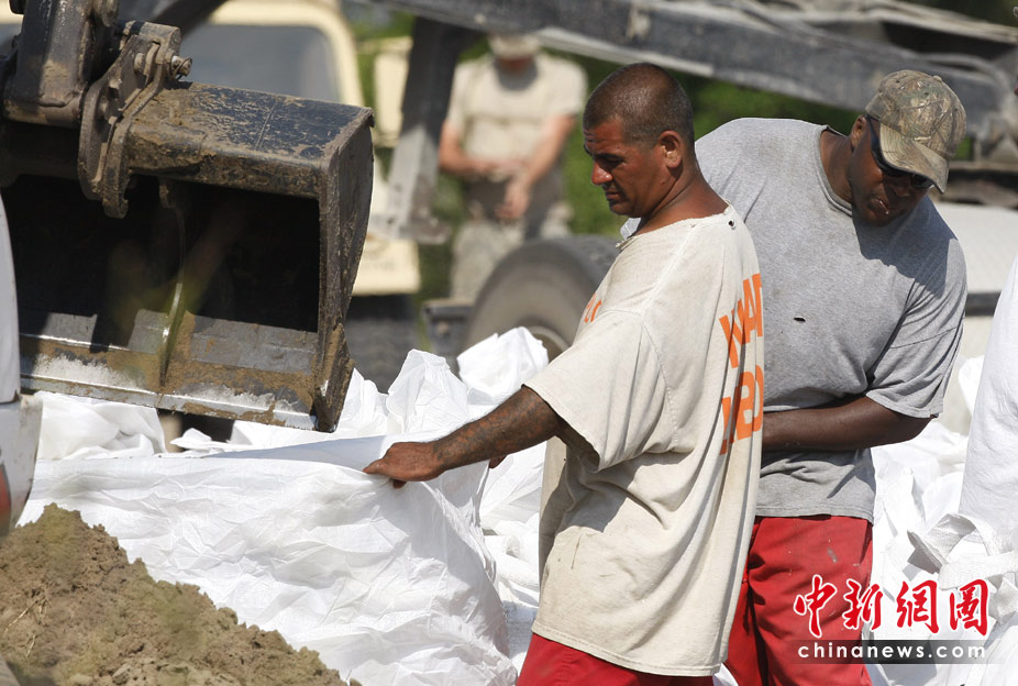 5月11日,美國路易斯安那州,國民警衛(wèi)隊(duì)用直升機(jī)向河口運(yùn)載沙袋,試圖阻止海上的油污進(jìn)入內(nèi)河。