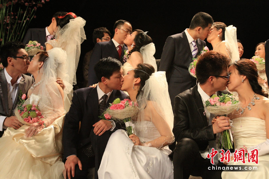 5月11日,35對新人來到世博法國館內舉行婚禮儀式。法國館舉行“法蘭西浪漫婚典”的集體婚禮。中新社發(fā) 潘索菲 攝