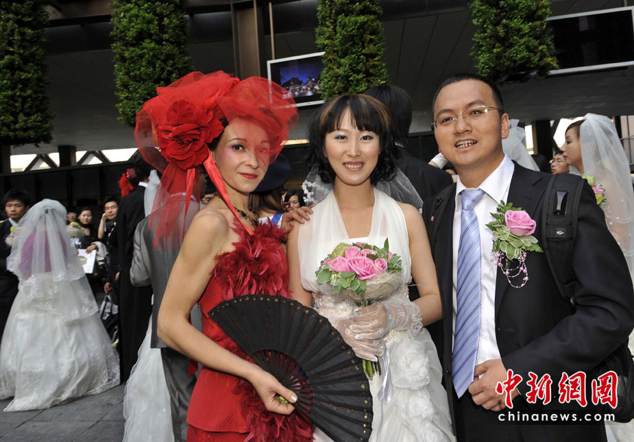 5月11日,35對新人來到世博法國館內(nèi)舉行婚禮儀式。法國館舉行“法蘭西浪漫婚典”的集體婚禮。中新社發(fā) 吳元峰 攝