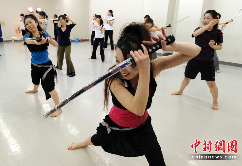 日本白領(lǐng)女性學(xué)習(xí)武士刀減壓