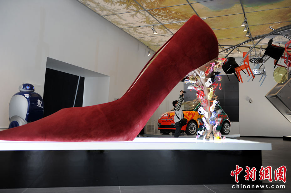 圖為意大利館的巨型高跟鞋。 中新社記者 廖攀 攝