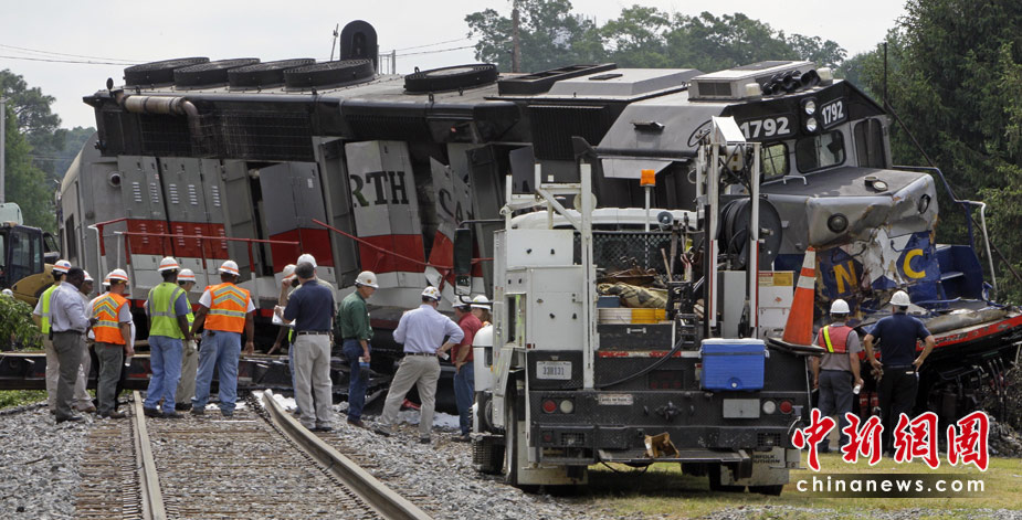 美國(guó)北卡羅來(lái)納州一列載有36人的通勤列車(chē)13日發(fā)生脫軌事故,造成至少13人受傷,火車(chē)頭和一節(jié)車(chē)廂起火。圖片來(lái)源:中國(guó)新聞網(wǎng)