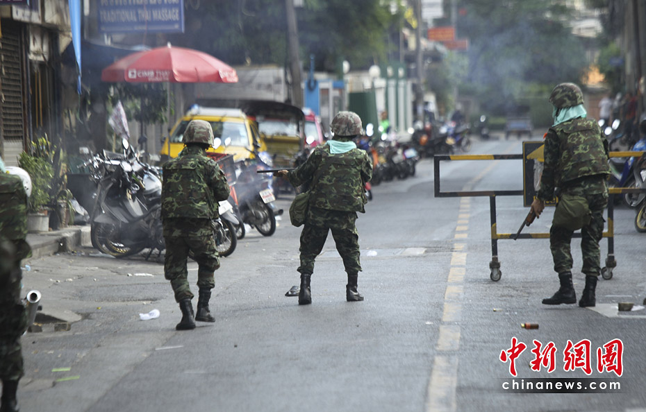 泰國(guó)政府軍和反政府示威者5月14日深夜在曼谷爆發(fā)嚴(yán)重暴力沖突。曼谷緊急醫(yī)療機(jī)構(gòu)15日稱,截止當(dāng)?shù)貢r(shí)間早晨6時(shí),沖突已導(dǎo)致16人死亡,至少141受傷,傷者中包括3名外國(guó)人。圖片來(lái)源:中國(guó)新聞網(wǎng)