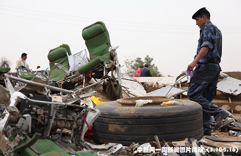 周三(12日),利比亞泛非航空公司(Afriqiyah Airways)的一架飛機(jī)在的黎波里機(jī)場(chǎng)著陸時(shí)墜毀。圖為一名警察走在飛機(jī)殘骸中。