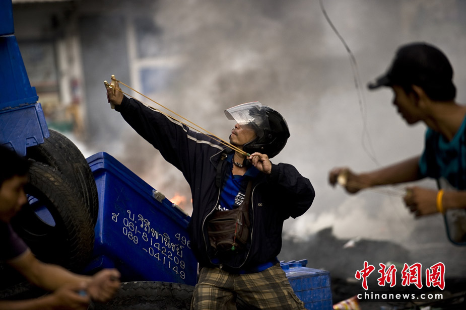 泰國軍隊和反政府的“紅衫軍”16日繼續(xù)在曼谷的多處地點對峙,槍聲和爆炸聲不時響起,曼谷的部分街道已成為“戰(zhàn)區(qū)”。泰國急救醫(yī)療部門17日表示,泰國軍警與反政府“紅衫軍”示威民眾3天來在曼谷街頭爆發(fā)的沖突,死亡人數已經上升到35人。圖片來源:中國新聞網