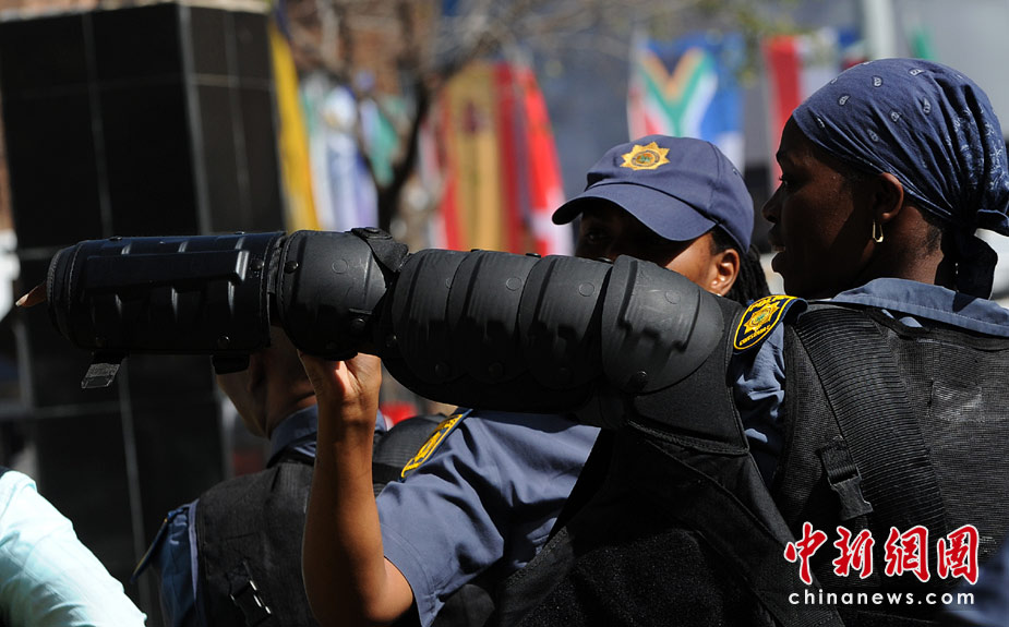 5月17日,南非約翰內斯堡,警察舉行防暴演習,為下個月舉行的世界杯做準備。 圖片來源:中國新聞網
