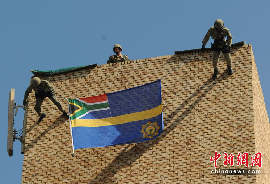 5月17日,南非約翰內斯堡,警察舉行防暴演習,為下個月舉行的世界杯做準備。 圖片來源:中國新聞網(wǎng)