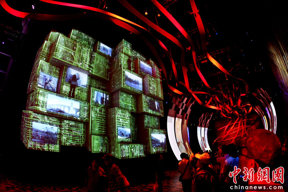 在世博會(huì)眾多的展館中,各類的大屏幕展示讓參觀者有如身臨其境,也讓游客們充分感受不同國家、不同地域的文化特色及先進(jìn)科技理念,如幻似夢(mèng)的屏幕光影也成為本次世博的最佳看點(diǎn)。圖為加拿大館。中新社記者 杜洋 攝