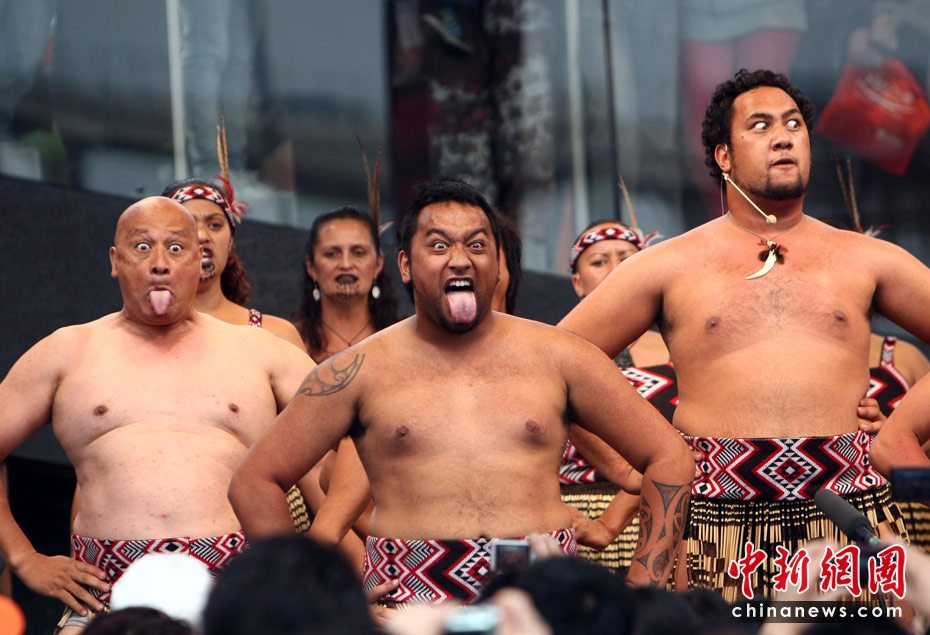 5月初,游客在上海世博會新西蘭館前赤膊上陣學(xué)跳毛利舞。中新社記者 杜洋 攝