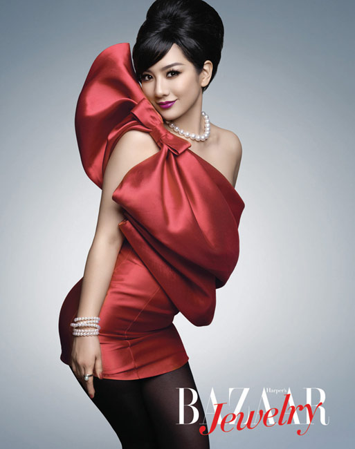 高高蓬起的發(fā)髻,剪裁流暢的禮服,還有頸上那串珍珠,沒有刺眼的光芒,沒有絢麗的色彩,典雅且華麗著。如此妝容會(huì)讓你想起老上海的名媛佳麗,或是奧黛麗赫本的回眸一笑,那些雋永的美麗。然而當(dāng)女主角變成黃奕,優(yōu)雅之外更多的是驚喜。亮紫、淺棕、朱紅,這些原本與經(jīng)典無關(guān)的色彩,在她身上完美的契合,典雅之外的俏皮,精彩之后的永恒,也許,黃奕拍攝的不僅僅是中國頂級(jí)的一線雜志《芭莎珠寶》的封面大片,更是她別具一格的生活姿態(tài)。