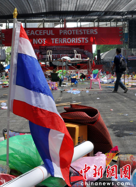 泰國紅衫軍領(lǐng)導(dǎo)人乍都蓬19日下午1時(shí)決定,向曼谷警方投降。同時(shí)向警方投降的還包括納塔兀、素蓬、翁醫(yī)師等紅衫軍核心領(lǐng)導(dǎo)人。紅衫軍領(lǐng)導(dǎo)人納塔兀責(zé)其支持者宣布,結(jié)束紅衫軍已持續(xù)了兩個(gè)多月的集會(huì)示威行動(dòng)。圖片來源:中國新聞網(wǎng)