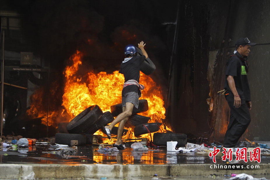 泰國軍方19日清場,希望將陷入內(nèi)戰(zhàn)邊緣的曼谷拯救出來,雖然紅衫軍節(jié)節(jié)敗退,但有激進(jìn)分子未肯罷休,四處放火,電視臺(tái)、股票交易所、電力公司、幾間銀行、商場戲院都遭殃,商場和便利店亦成為搶掠目標(biāo)。據(jù)報(bào)曼谷有27處地方起火,泰國最大的商場Central World、Siam Square和Siam Paragon三大購物中心被縱火,其中Central World燒通頂,據(jù)報(bào)快將倒塌。