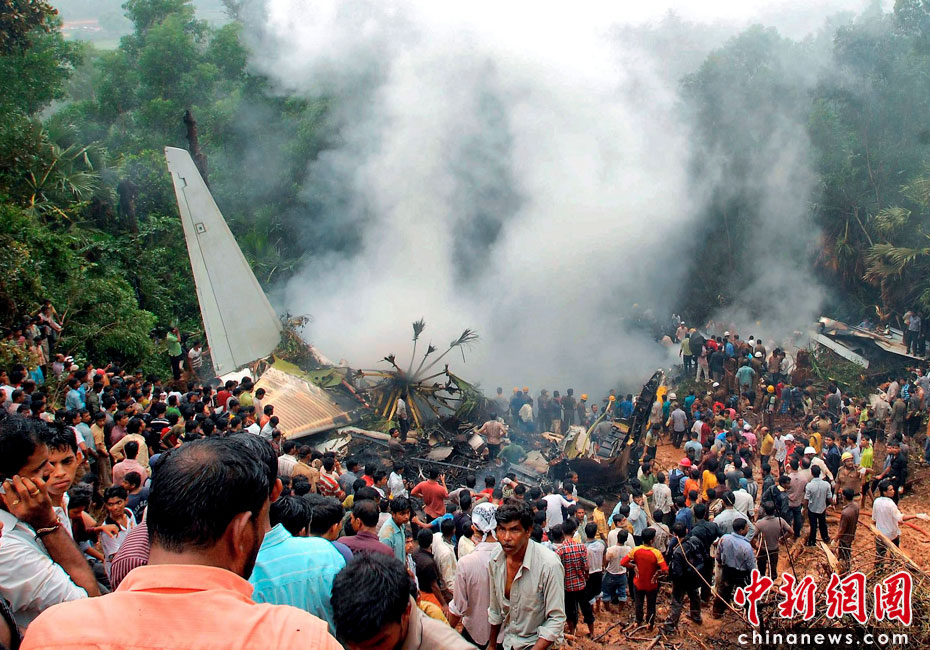 5月22日,印度一架客機在南部卡納塔克邦門格洛爾市降落時失事,造成至少160人喪生。目擊者稱,當天早上6點左右,這架飛機準備在馬拉格爾機場降落,但不知何故沖出跑道然后一頭扎到機場附近的叢林中起火爆炸。圖片來源:中國新聞網(wǎng)
