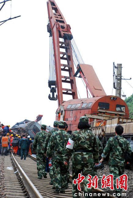 5月23日凌晨2時(shí)10分,滬昆鐵路江西東鄉(xiāng)段發(fā)生一起客運(yùn)列車脫線事故,截至上午9時(shí),已有10人遇難,車內(nèi)乘客全部被轉(zhuǎn)移,現(xiàn)場(chǎng)救援工作正在緊張進(jìn)行。事故發(fā)生后,南京軍區(qū)武警,江西省消防、交警,中鐵電氣化局、醫(yī)療等部門立即組織近萬(wàn)名人員參與搶險(xiǎn)救災(zāi),目前現(xiàn)場(chǎng)已有10余臺(tái)挖土機(jī)和吊車參與救援。中新社發(fā) 劉占昆 攝