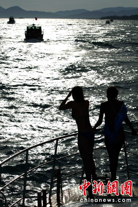 國(guó)際比基尼佳麗乘游艇暢游三亞