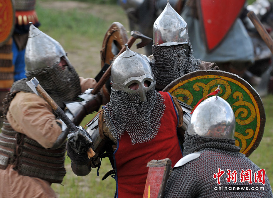 5月22日,在烏克蘭基輔郊區(qū)舉行的基輔羅斯節(jié)表演上,演出者再現(xiàn)了十三世紀(jì)的基輔羅斯戰(zhàn)役歷史場面。圖片來源:中國新聞網(wǎng)