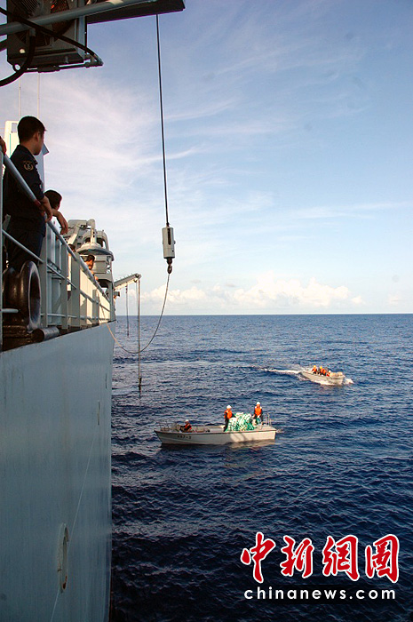 圖為小艇轉運。李林掀 攝