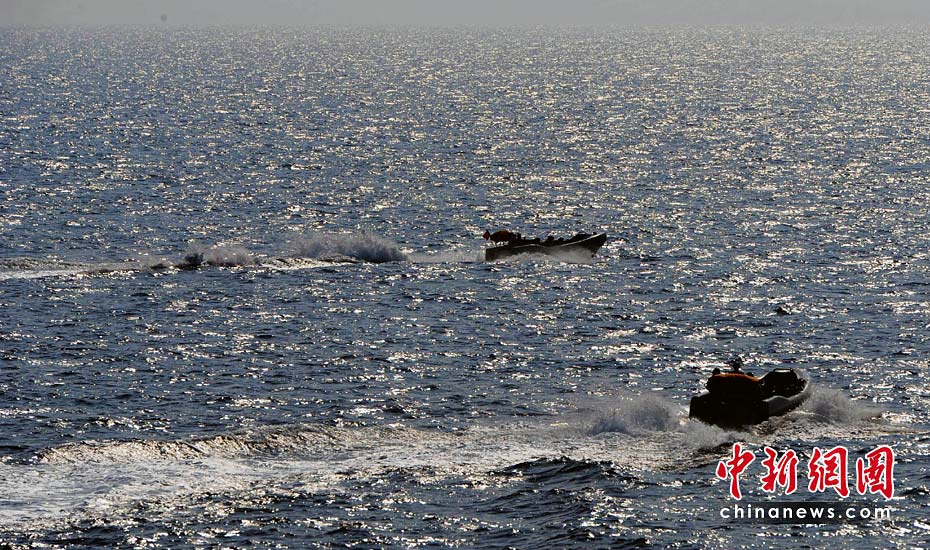 2艘小艇協(xié)同前出,高速抵近可疑目標(biāo)。江山 攝