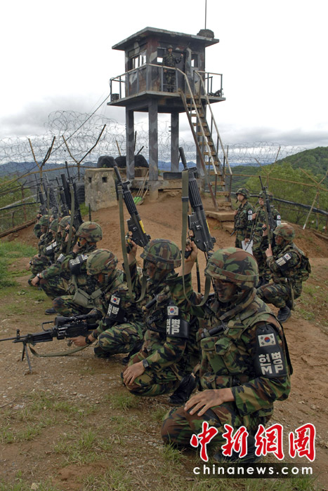 5月24日,韓國軍隊在靠近韓朝非軍事區(qū)的揚口舉行軍事演習。圖片來源:中國新聞網(wǎng)