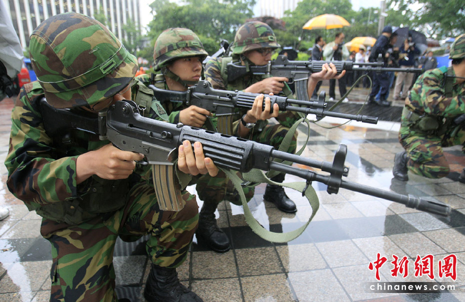 5月24日,韓國軍隊(duì)在靠近韓朝非軍事區(qū)的揚(yáng)口舉行軍事演習(xí)。圖片來源:中國新聞網(wǎng)