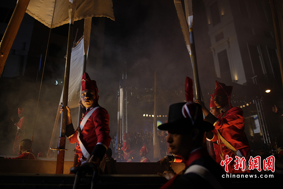 5月25日是阿根廷獨(dú)立200周年紀(jì)念日。在阿根廷首都布宜諾斯艾利斯人們舉行盛大的慶;顒蛹o(jì)念這一偉大的日子。圖片來源:中國新聞網(wǎng)