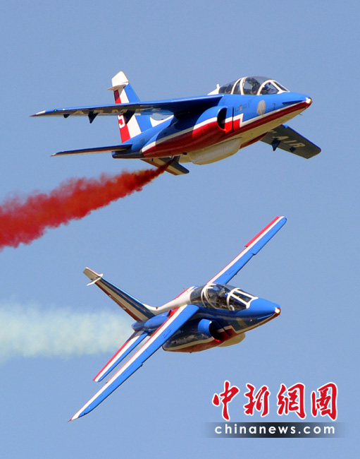 5月25日,法國巡邏兵特技飛行表演隊(duì)在普羅旺斯地區(qū)進(jìn)行驚險(xiǎn)的飛行表演。