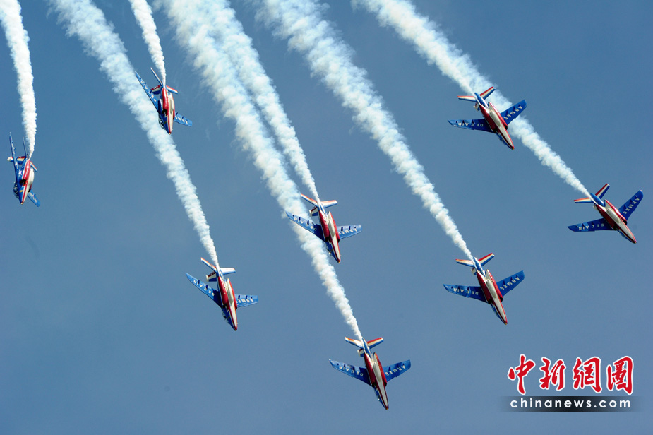 5月25日,法國巡邏兵特技飛行表演隊在普羅旺斯地區(qū)進(jìn)行驚險的飛行表演。