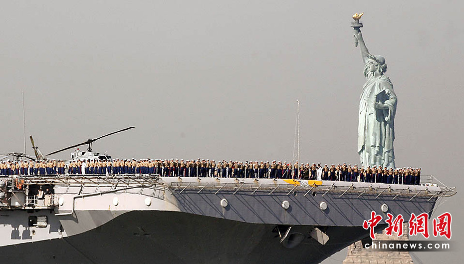 當(dāng)?shù)貢r(shí)間5月26日,美國(guó)第23屆紐約艦隊(duì)周開(kāi)幕,包括“硫磺島”號(hào)兩棲攻擊艦在內(nèi)的11艘參加艦隊(duì)周活動(dòng)的軍艦由南向北在哈得孫河面上游弋。紐約民眾將以?吭诼D哈得孫河86號(hào)碼頭的“無(wú)畏號(hào)”航母博物館為中心,展開(kāi)為期一周的慶祝和紀(jì)念活動(dòng)。圖片來(lái)源:中國(guó)新聞網(wǎng)