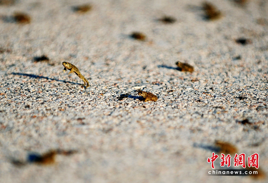 26日,希臘東北部地區(qū)的一條高速公路遭數(shù)百萬(wàn)只青蛙“占據(jù)”而被迫關(guān)閉了兩個(gè)小時(shí)。希臘環(huán)保部門(mén)表示,這些青蛙可能只是在前往附近小湖找食物過(guò)程中“碰巧路過(guò)”高速公路。