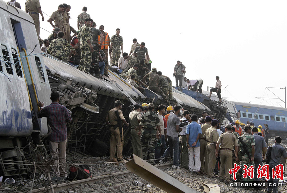 當(dāng)?shù)貢r(shí)間5月28日,印度一列特快列車在東部西孟加拉邦的西米德納布爾遭反政府武裝襲擊脫軌,造成百余人死傷。圖片來(lái)源:中國(guó)新聞網(wǎng)