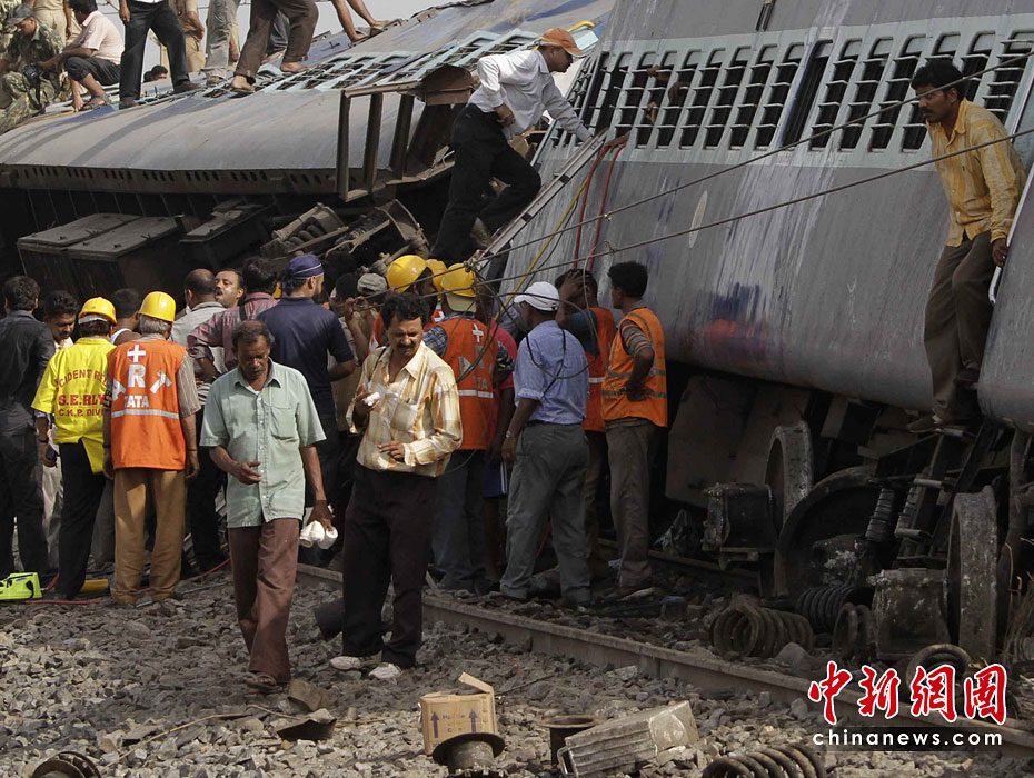 當(dāng)?shù)貢r(shí)間5月28日,印度一列特快列車在東部西孟加拉邦的西米德納布爾遭反政府武裝襲擊脫軌,造成百余人死傷。圖片來源:中國(guó)新聞網(wǎng)