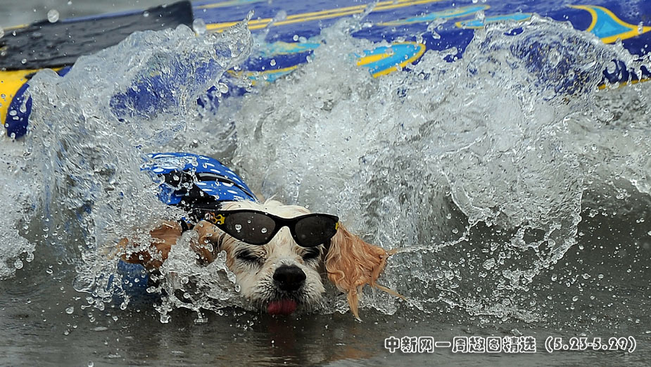 5月22日,美國加利福尼亞州圣迭戈舉行了一場妙趣橫生的狗狗沖浪比賽。圖片來源:中國新聞網>>點擊觀看詳細內容
