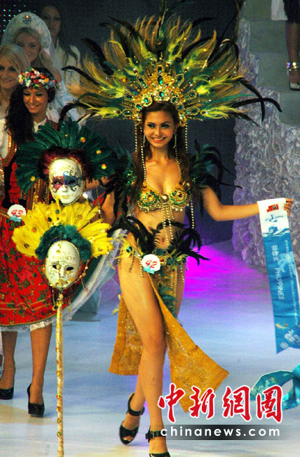 5月29日晚,第35屆國際比基尼小姐全球總決賽在三亞“美麗之冠”落下帷幕,22歲的羅馬尼亞選手Diana Irina Boanca摘得冠軍?倹Q賽還評選出了四季小姐,18歲的中國選手趙茜獲得“秋季小姐”,澳大利亞、委內(nèi)瑞拉和拉脫維亞選手分別獲得春、夏、冬季小姐。共有來自世界各地的64位佳麗參加了總決賽的角逐。當(dāng)晚,佳麗們展示了各自國家或地區(qū)特色的民族服飾,用不同的方式展示了不同風(fēng)格的比基尼“秀”,性感迷人。 中新社記者 尹海明攝