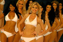 5月29日,在拉脫維亞首都里加,眾多金發(fā)美女身著艷麗裝扮在街頭游行,大秀嫵媚身材。