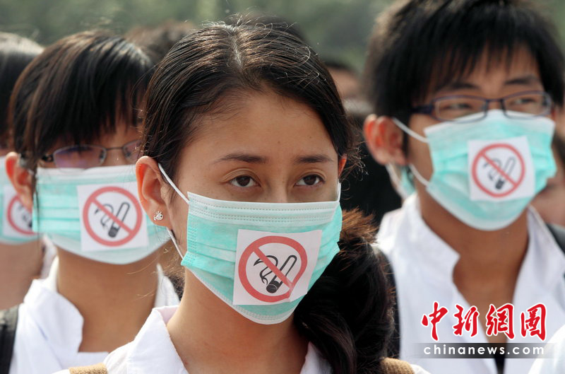 5月31日是第23個“世界無煙日”,今年的主題是:性別與煙草——抵制針對女性的市場營銷。吸煙有害健康早已成為不爭的事實。有關醫(yī)學研究表明,吸煙可導致心腦血管疾病、癌癥、慢性阻塞性肺病等多種疾病,已成為繼高血壓之后的全球第二號殺手。為了您的健康,請熄滅您手中的香煙。圖為5月29日西安大學生戴著無煙口罩開展控煙行動。袁景智 攝