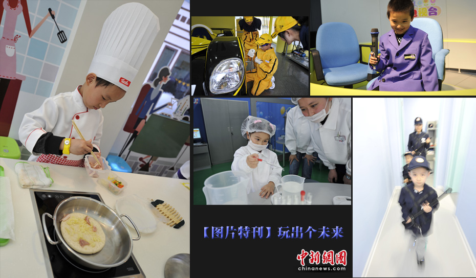 世博園里還有一塊孩子專屬的“領(lǐng)地”——育樂灣。設(shè)計者從孩子的認知視角出發(fā),設(shè)計了25個具有行業(yè)代表性的職業(yè)體驗場館,包括報社、出版社、警署、消防局、醫(yī)院、汽車維修保養(yǎng)、機器人制作公司等等。各個職業(yè)體驗館的許多道具都是真實的。 體驗迷你世界烤一回比薩、開一回火車、錄一期節(jié)目、走一次秀……在這座4200平方米的小城,孩子們在玩樂中體驗著未來的職業(yè)目標(biāo)。如果把世界博覽會比作連接現(xiàn)實與未來的一座“橋”,那么兒童就是這座“橋”上最引人注目的群體。兒童,是人類希望的象征,是真正面向未來、掌握未來的人。中新網(wǎng)記者 王紅綱 攝