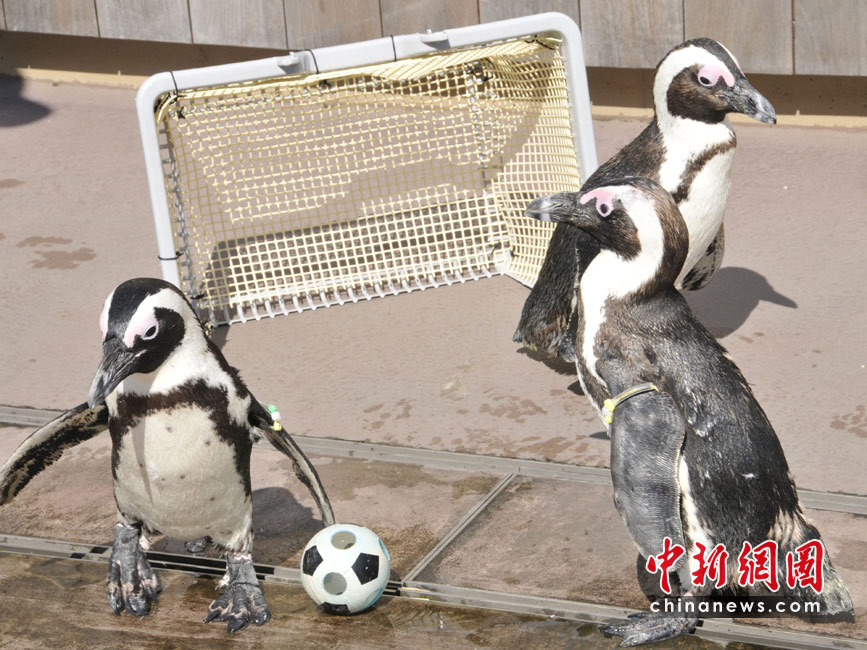 6月1日,在日本東京一家海洋館里,幾只企鵝“披掛上陣”,進(jìn)行了一場(chǎng)別開生面的足球賽,迎接世界杯。