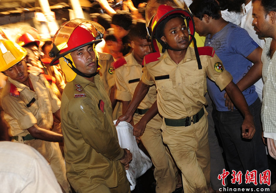 6月3日,孟加拉國首都達(dá)卡夜間發(fā)生一起重大火災(zāi),到目前為止已造成至少87人死亡,上百人受傷。圖為火災(zāi)現(xiàn)場消防員抬出一具遇難者遺體。圖片來源:中國新聞網(wǎng)