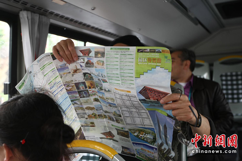 截至6月5日19點30分,上海世博會累計參觀者已超過1000萬人次。據(jù)悉,上海世博會的規(guī)劃用地為5.28平方公里,約242個國家和國際組織參展分布在浦東和浦西兩大區(qū)域。要想在這么大的地方找到自己想去的地方,那么世博地圖就是必須的裝備。圖為上海世博園內游客正在地圖上尋找自己要去的地方。中新社記者 杜洋 攝