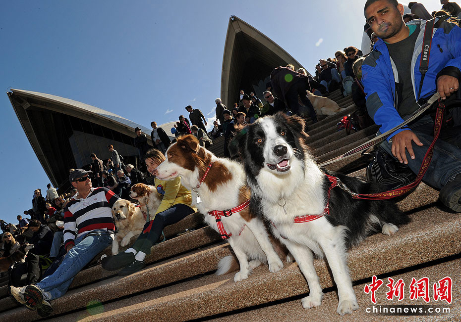 6月5日,澳大利亞悉尼歌劇院外舉辦了全球首場(chǎng)狗能聽懂的音樂(lè)會(huì),約有1000人帶著數(shù)百只愛(ài)犬在劇院前庭和階梯落坐,聆聽“狗的音樂(lè)”,整場(chǎng)音樂(lè)會(huì)全長(zhǎng)20分鐘。圖片來(lái)源:中國(guó)新聞網(wǎng)