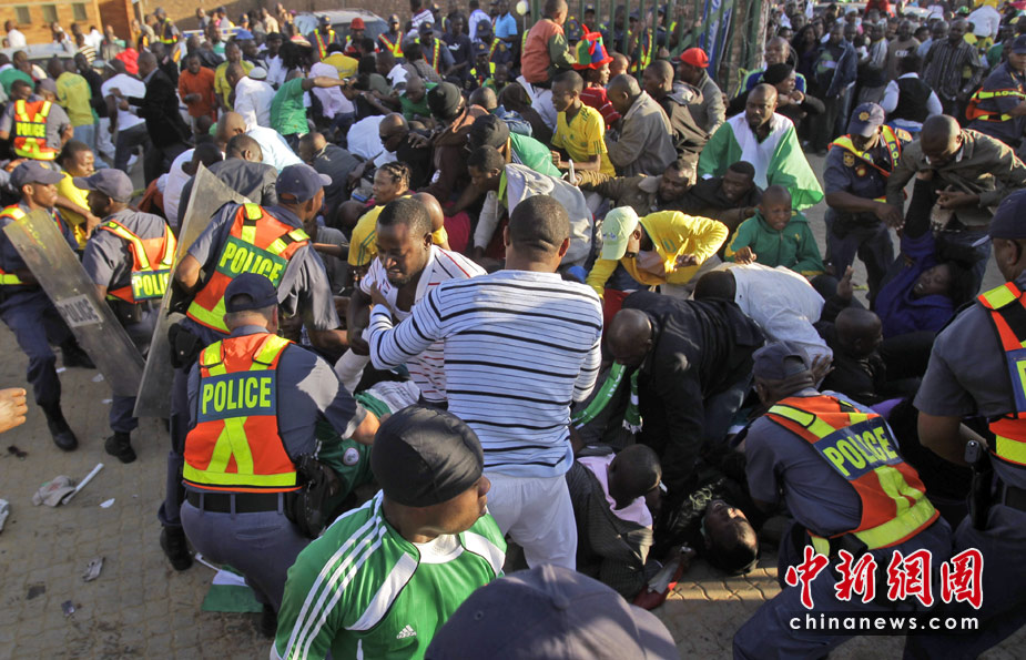 6月6日,在南非約翰內(nèi)斯堡市郊的馬庫隆球場進行的尼日利亞隊和朝鮮隊的世界杯熱身賽前發(fā)生了球迷踩踏事件。這起惡性踩踏事件共造成9人受傷,其中包括1名安保人員。據(jù)悉,在惡性踩踏事件發(fā)生前后,當?shù)匕踩藛T對球迷們進行了鎮(zhèn)壓,惡性踩踏事件很可能與此次鎮(zhèn)壓有關(guān)。