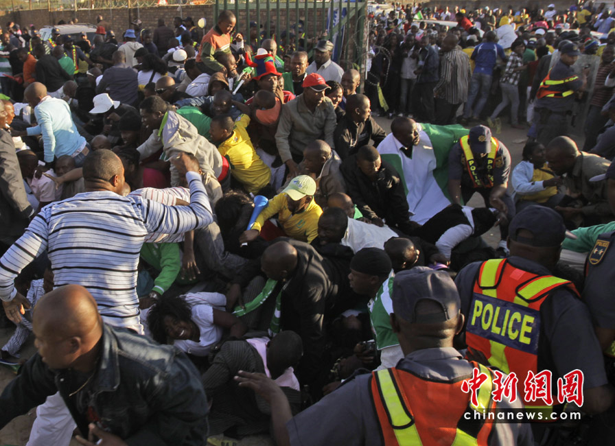 6月6日,在南非約翰內(nèi)斯堡市郊的馬庫隆球場進行的尼日利亞隊和朝鮮隊的世界杯熱身賽前發(fā)生了球迷踩踏事件。這起惡性踩踏事件共造成9人受傷,其中包括1名安保人員。據(jù)悉,在惡性踩踏事件發(fā)生前后,當?shù)匕踩藛T對球迷們進行了鎮(zhèn)壓,惡性踩踏事件很可能與此次鎮(zhèn)壓有關(guān)。
