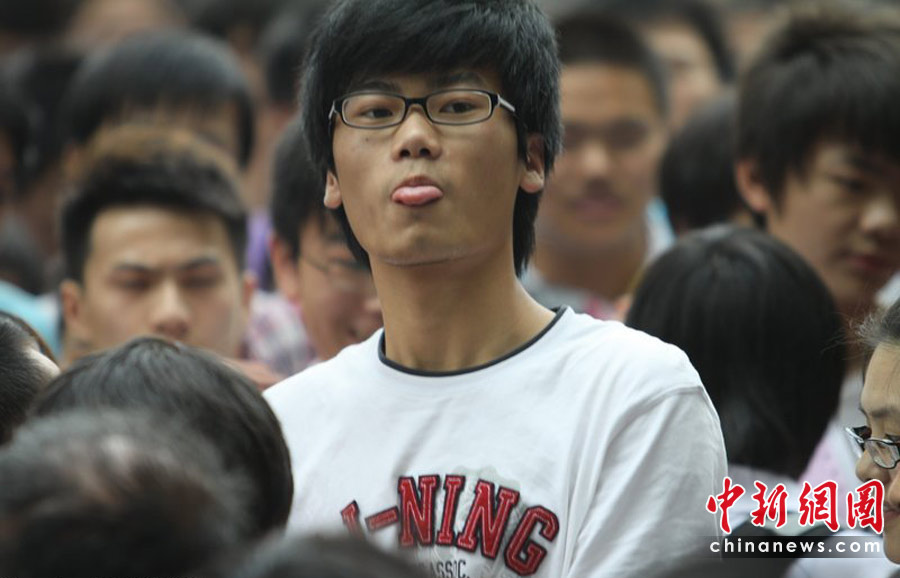 6月7日,為期兩天的2010年普通高等學(xué)校招生全國統(tǒng)一考試開考,全國將有957萬考生走進(jìn)考場(chǎng)。圖為6月7日,武漢,高考首場(chǎng)結(jié)束,考生輕松走出考場(chǎng)。在湖北武漢建港中學(xué)考點(diǎn),走出考點(diǎn)的高考生在尋找自己的家長(zhǎng)。孫新明 攝