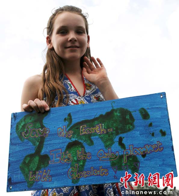 當(dāng)?shù)貢r間2010年6月6日,英國倫敦舉行卡姆登綠色市集(Camden Green Fair),這是英國倫敦每年環(huán)保領(lǐng)域的“重頭戲”。本屆市集的主旨是要喚起大眾對環(huán)境問題的關(guān)注,選擇更加可持續(xù)發(fā)展的生活方式。據(jù)活動主辦方預(yù)計,本屆市集將吸引來自英國各地和世界各國的2萬多人參加。圖為一位英國小姑娘展示她創(chuàng)作的環(huán)保主題繪畫“save the earth”。Fiona/攝 Fiona 馬小剛/文