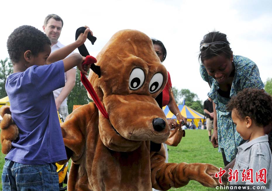 當?shù)貢r間2010年6月6日,英國倫敦舉行卡姆登綠色市集(Camden Green Fair),這是英國倫敦每年環(huán)保領域的“重頭戲”。本屆市集的主旨是要喚起大眾對環(huán)境問題的關注,選擇更加可持續(xù)發(fā)展的生活方式。據(jù)活動主辦方預計,本屆市集將吸引來自英國各地和世界各國的2萬多人參加。圖為由工作人員扮成的卡通狗總會引來許多孩子。Fiona/攝 Fiona 馬小剛/文
