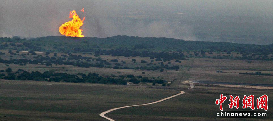 當?shù)貢r間6月7日,美國得克薩斯州北部發(fā)生一起天然氣管道爆炸事件。幾名工人在進行挖掘作業(yè)時觸及鋪設(shè)在地下的天然氣管道,引發(fā)爆炸及大火,造成至少一名工人死亡,7人受傷。圖片來源:中國新聞網(wǎng)
